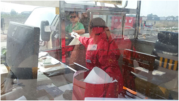 进入5月份以来,天气逐渐转热,收费室内更是闷热至极 。尽管如此收费室的同志们没有丝毫怠慢工作,他们克服种种,把工作放在第一位,在早晨打开窗户让新鲜的空气流通。遇到进去的车辆,收费员总是认真的为司机输入车牌号码并为司机发卡同时收费保安为司机打开起落杆,出门的时候收费员很耐心收钱为司机结账并登记好车辆,夜班的时候显得难熬,但这并不影响收费部同志们认真工作的态度,有时他们还会把白天登记的车辆整理一下,有时会把用过的车卡擦拭干净,他们总是在岗位忙碌着…..