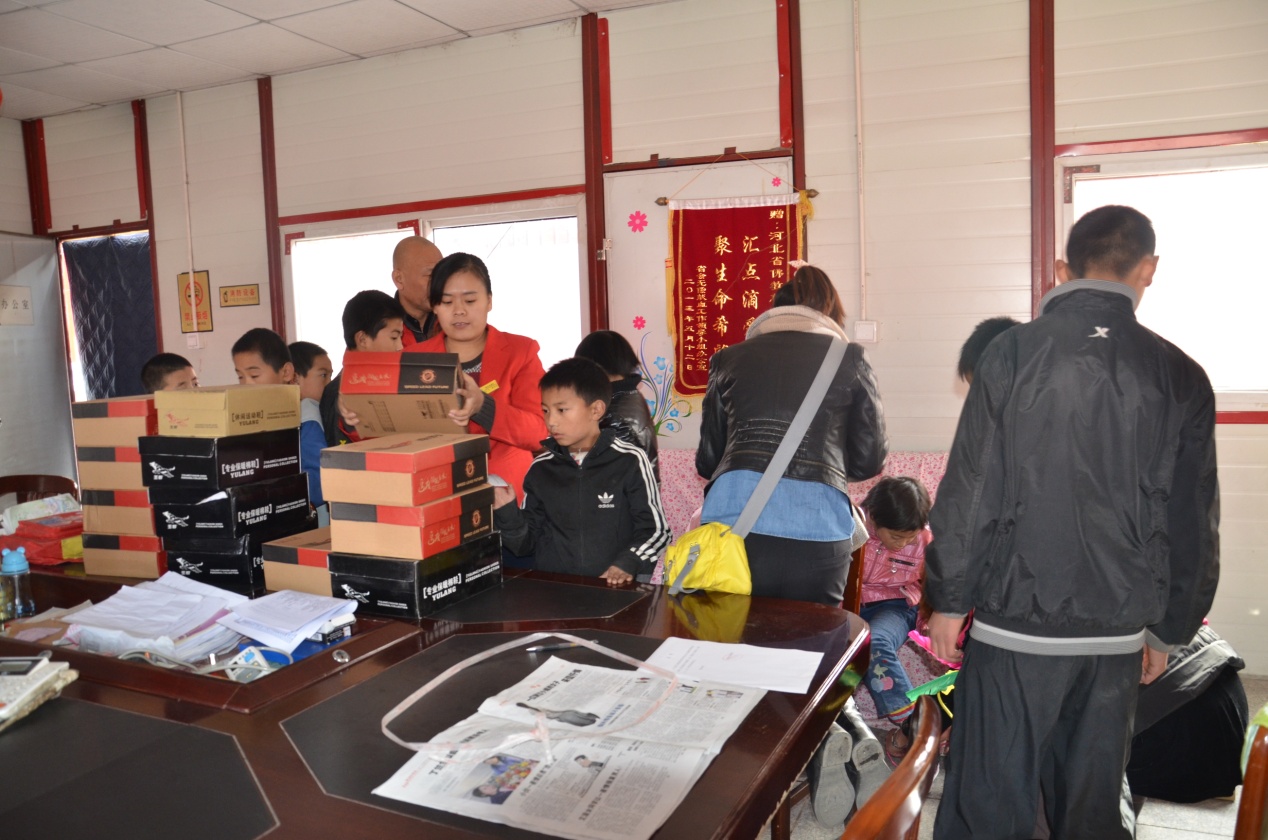2013年11月23日上午,润丰五金城总经理徐晓鸣,率领商户和员工代表一行9人,驱车赶往新华区小安舍——弘德家园将用爱心善款统一为孤儿们购置的70双过冬棉鞋和棉袜,一一送到了孩子们的手中。孩子们接受到捐赠的衣物后,欣喜若狂,把幸福和喜悦都写在了小脸上,真正体验到了社会大家庭给他们带来的温暖。负责接待的工作人员小王介绍说:“每年到这个季节,好多孩子因不能及时穿上棉鞋而挨冻,这下好了,正是你们的爱心奉献,我们再也不用为孩子们的冻脚而发愁了!”,他的脸上透着喜悦。来自邯郸大名的孤儿小赵(今年8岁)眼含热泪说:“谢谢叔叔阿姨们!我一定要好好学习,长大后回报社会”。