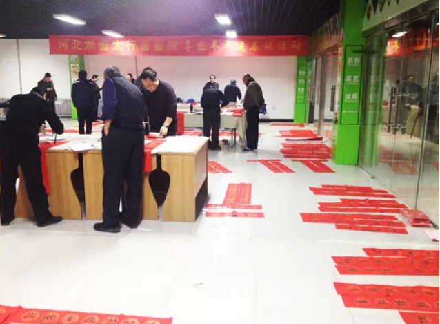 春节是中华民族祝福迎祥的传统节日,贴春联是炎黄子孙营造节日气氛的文化传统。1月19日上午,河北润丰太行书画院在润丰五金城精品超市二楼广场举办了“喜迎羊年送春联活动”。来自书画院的老师们当众挥毫泼墨,并把写好的一幅幅春联赠送给广大商户。