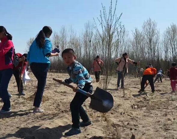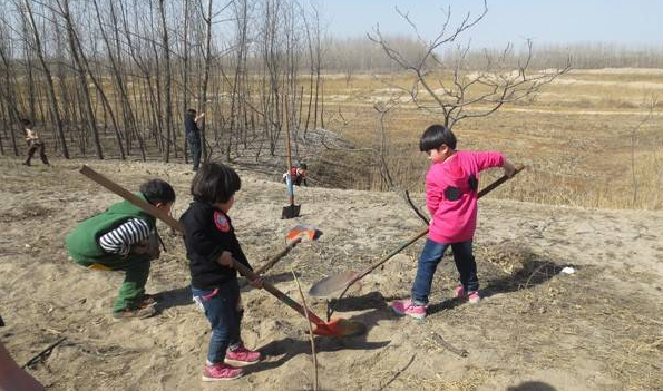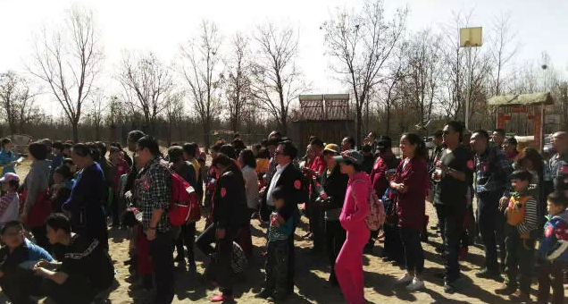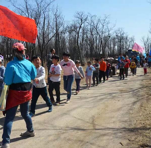 要开始植树了,在这里要给小朋友们点个“赞”,为了锻炼孩子们的独立能力,让他们离开家长的陪伴,在老师的带领下,排着整齐的队伍,徒步前进来到植树场地。