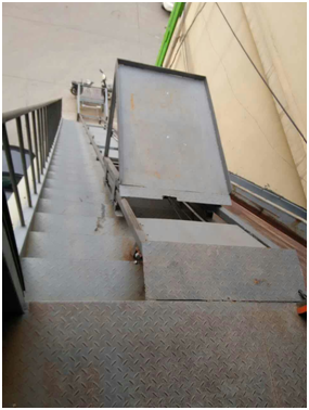 固定在库房货梯步行梯上,承重800斤,功率0.6千瓦,使商户运输小件货物时更方便,不必再使用大货梯,而大货梯功率7.5千瓦,使用提升机大大节省了用电量。