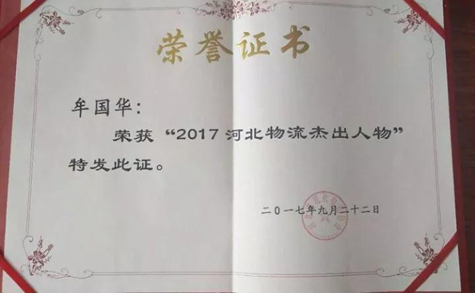 集团副总经理牟国华荣获“2017河北物流杰出人物”