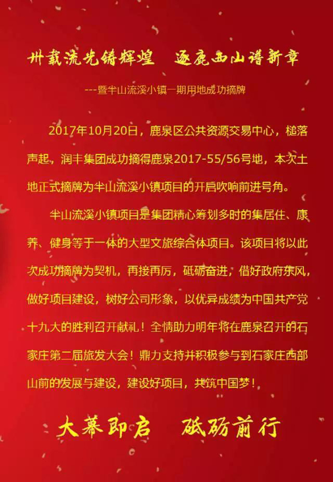 半山流溪小镇一期用地成功摘牌