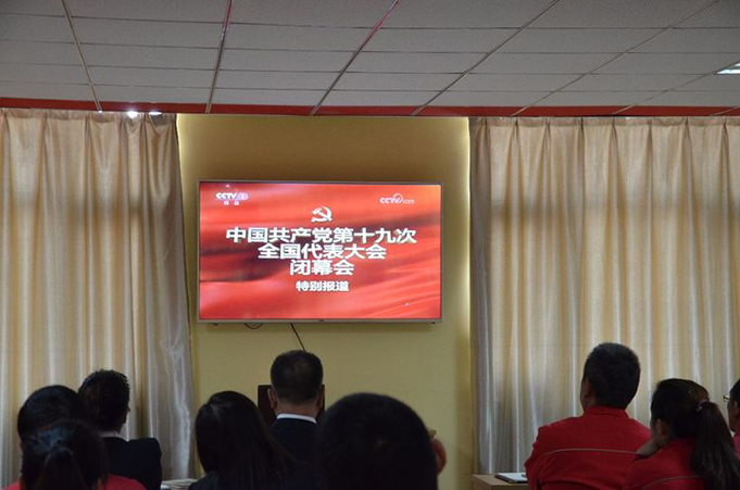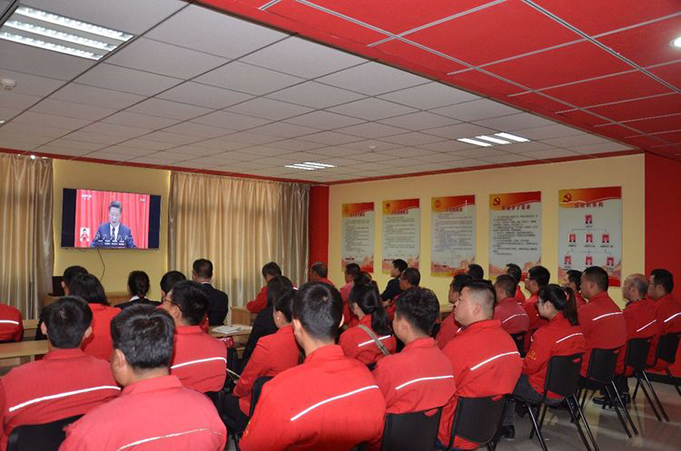 2017年10月18日,润丰集团组织润丰物流园、润丰五金城两个党支部,以及集团其他部门党员共计32人,在栾城区润丰物流园党群活动中心观看十九大开幕式盛况,聆听习总书记的大会报告。