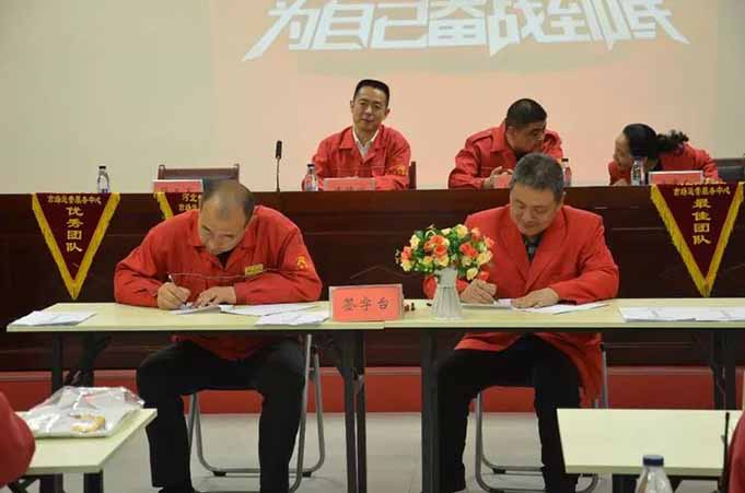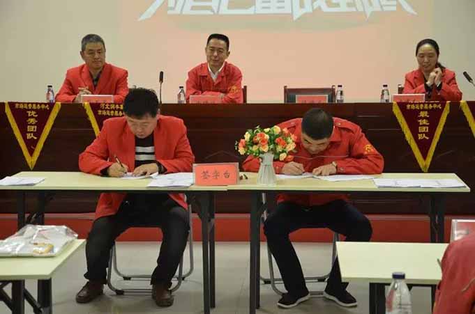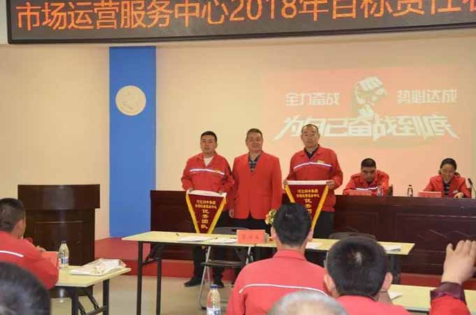 3月29日上午,市场运营服务中心总裁徐晓鸣、副总裁陈晓天、薛玉军分别与各园区签订2018年年度责任状,进行任务分解、责任落实、明确奖惩,确保全年任务完成。我们的口号是“全力奋战,势必达成,为润丰、为自己奋战到底”“开创新时代,以变应未来”!